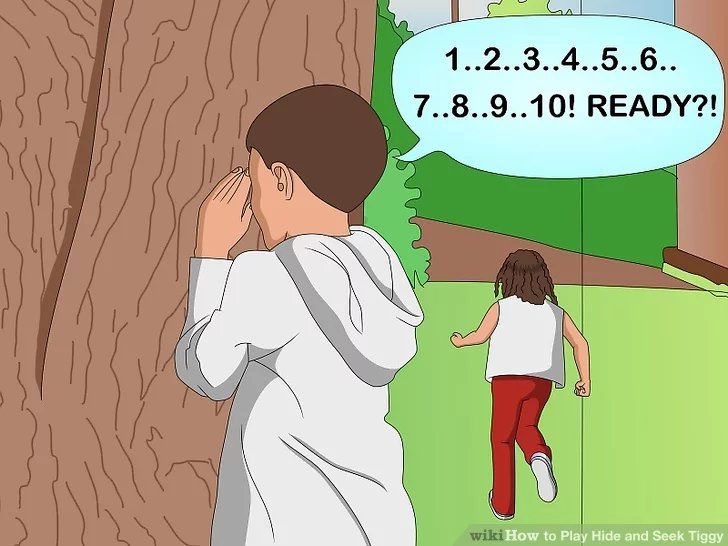 Hide-and-seek is a popular children’s game in which at least two players conceal themselves in a set environment, to be found by one or more seekers. The game is played by one player chosen closing their eyes and counting to a predetermined number while the other players hide. Wikipedia